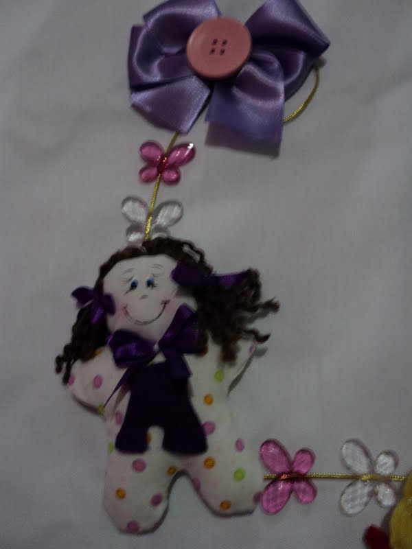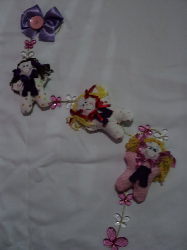 MOBILE VETICAL EM TECIDO MENINAS COM NOME EM FELTRO E DETALHES EM ACRILICO